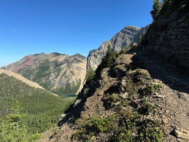 This isn't a "walk in the park", it's a full point-to-point expedition, meaning we start at one trailhead and hike all the way across to another! Rated moderate to difficult, this is a big day on your feet. You'll tackle a 700 m (2,300 ft) elevation gain, but the grand finale is a massive 1,200 m (4,000 ft) scenic descent into town. It requires endurance, but the backcountry secrets you'll discover are absolutely worth it. And of course, bragging rights over dinner.
